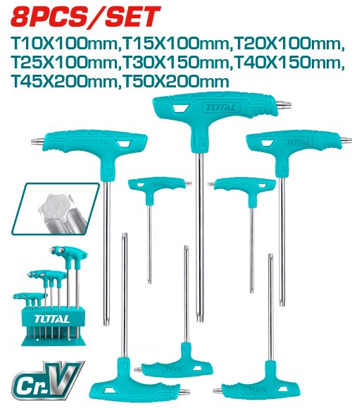 Набір шестигранних ключів TOTAL THHW80836 Torx, Т-подібна рукоятка, 8шт