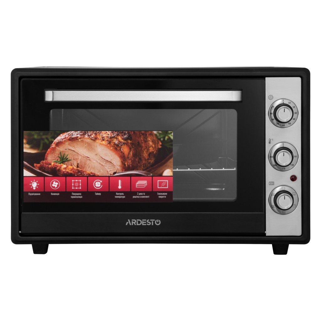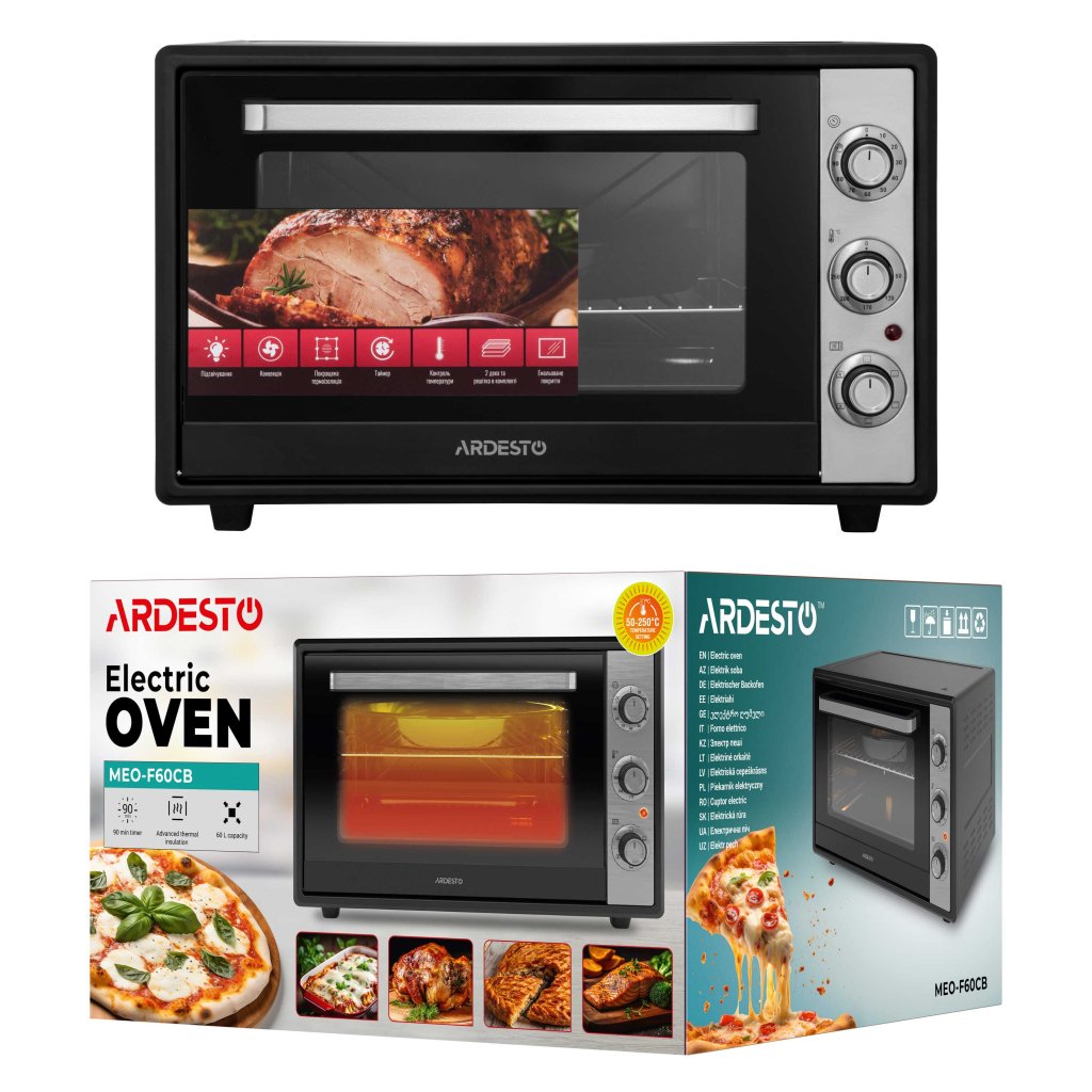 Електрична піч ARDESTO – надійний помічник на кухні для справжніх кулінарних експериментів! Завдяки об’єму 60 л і потужності 2кВт вона забезпечує рівномірне приготування навіть великої кількості продуктів. Регулювання температури від 50 до 250 °C і 5 режимів, включно з конвекцією, зумовлюють можливість готувати страви різної складності. Із таймером до 90 хв та індикацією завершення процесу легко контролювати час, а внутрішнє освітлення додає зручності.
