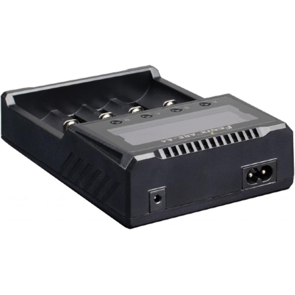 У Fenix ARE-A4 присутні 4 слота для установки акумуляторів. Вони розташовані поруч, але працюють абсолютно автономно, що дозволяє навіть одночасно заряджати батареї абсолютно різних форматів. Пристрій самостійно їх ідентифікує і підбере потрібну програму роботи. Користувач ж всі важливі дані може побачити на вбудованому екрані. На ньому відображаються тип і напруга батареї, сила струму для зарядки, час зарядки і поточний стан. Причому, останній з перерахованих параметрів вказується за допомогою зображення батарейки, заповненої в тій чи іншій мірі. Якщо батарейка заповнена всього однієї миготливою рискою, значить заряд акумулятора в реальності не перевищує 20%. Якщо блимає друга рисочка, то заряд дорівнює 20% -40%, третя – 40% -60%, четверта – 60% -80%, п’ята – 80% -99%. Коли зображена повністю заповнена батарейка – процес зарядки завершений і акумулятор можна виймати з пристрою.