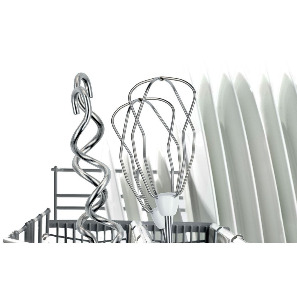 Міксер Bosch MFQ36400 — якісний, надійний і простий у використанні міксер, обладнаний електродвигуном потужністю 450 Вт. Він представлений у білому корпусі із сірими вставками, відрізняється гарною ергономікою, оптимальними розмірами та вагою, комплектується двома видами насадок: вінчиками для збивання й гачками для замішування тіста. Останні допускають миття в посудомийній машині.
