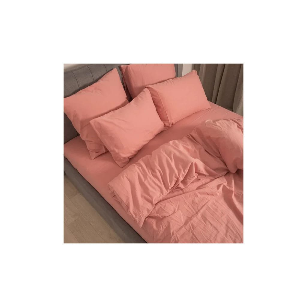 євро, Простирадло – 240 x 260 см, Підковдра – 200 x 220 см, Наволочка – 50 х 70, 70 х 70 см, варена бавовна, 1 шт., 4 шт., однотонні моделі, фірмова картонна коробка, персиковий
