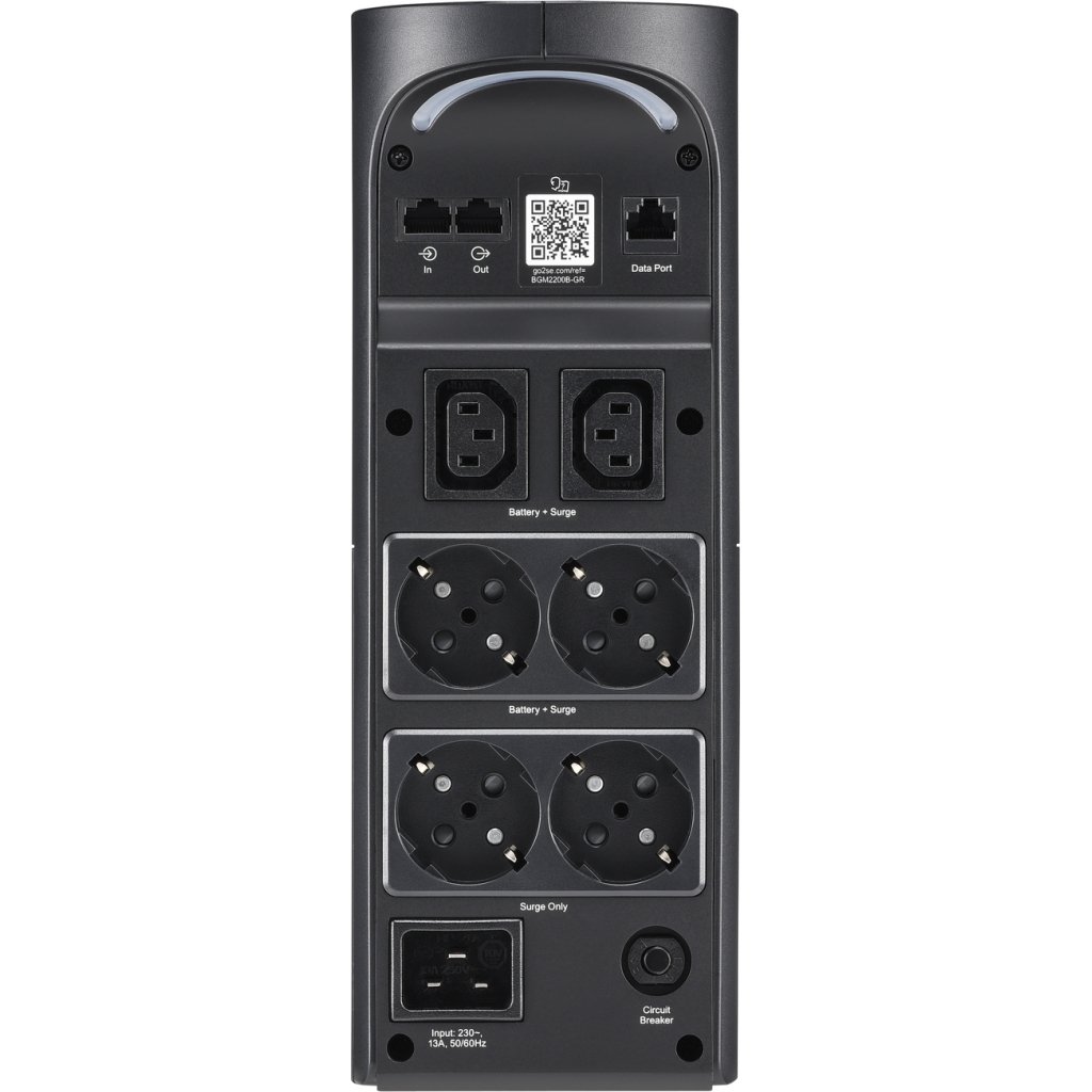 Пристрій безперебійного живлення APC Back-UPS Pro забезпечує чудовий захист електроживлення для високопродуктивних ігрових консолей і ПК, маршрутизаторів/модемів та ігрових аксесуарів. Цей потужний баштовий ДБЖ 2200 ВА/1320 Вт має загалом 6 розеток, з яких 3 призначені для живлення від батареї та захисту від стрибків напруги, а 3 – тільки для захисту від стрибків напруги. Його ударостійкість становить 1080 джоулів.